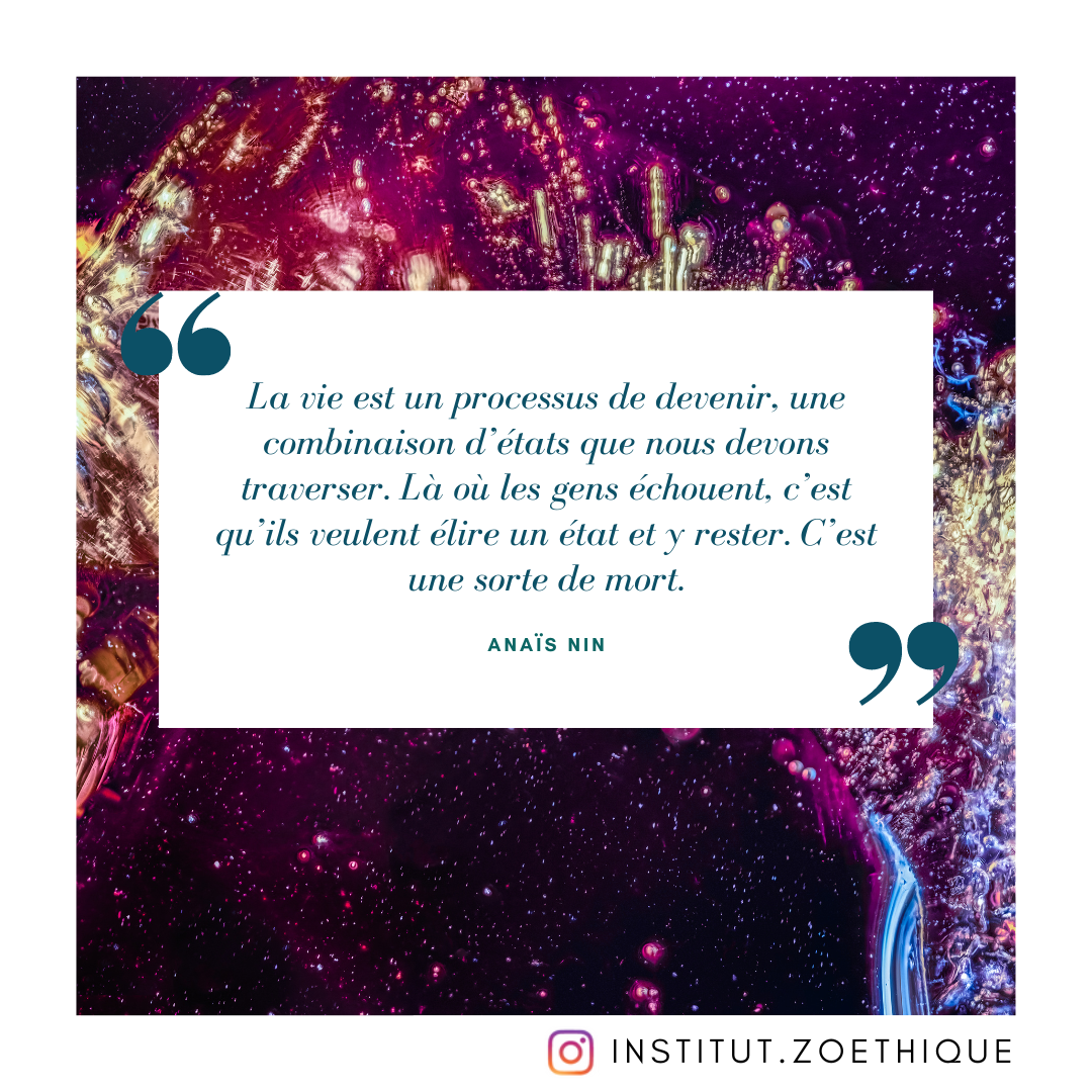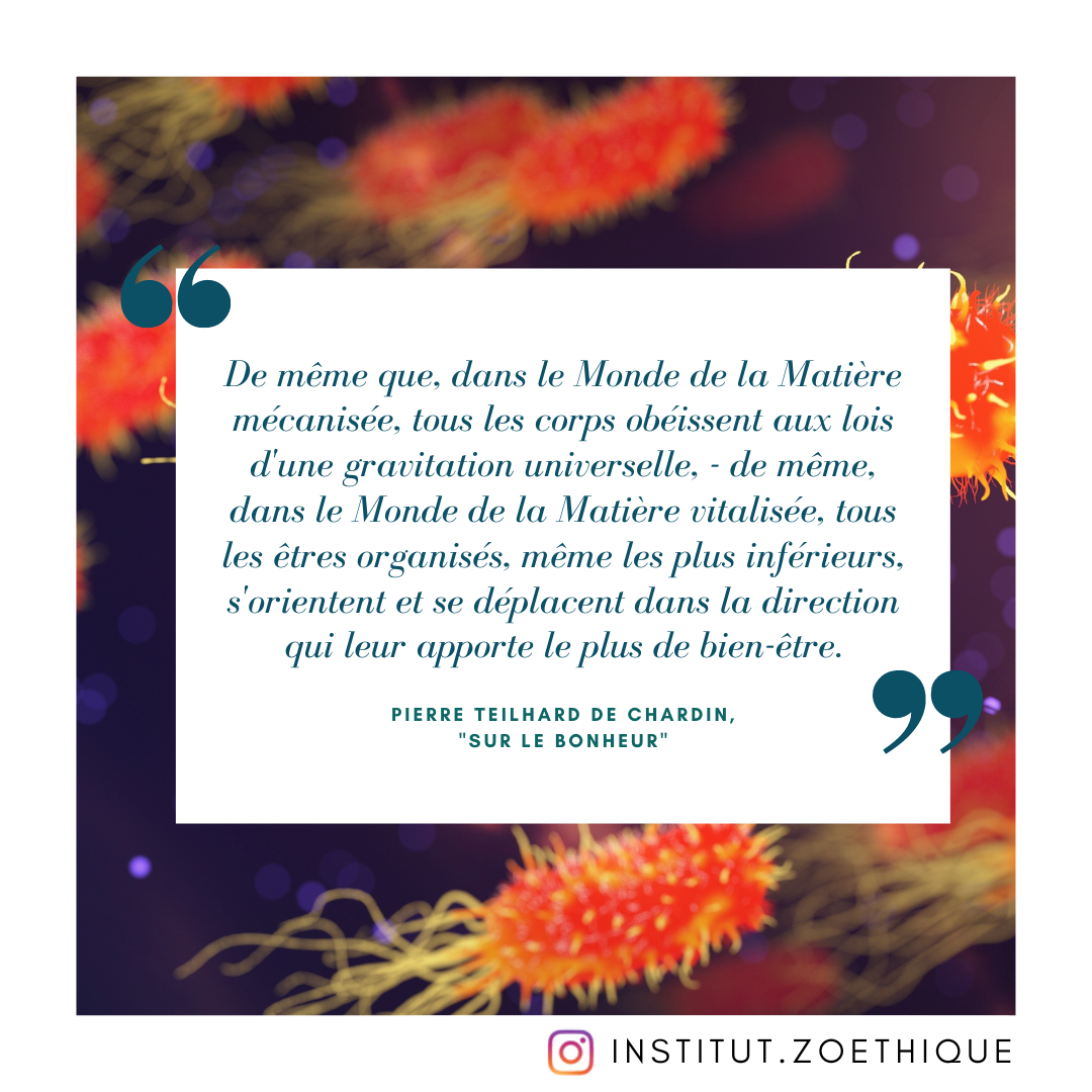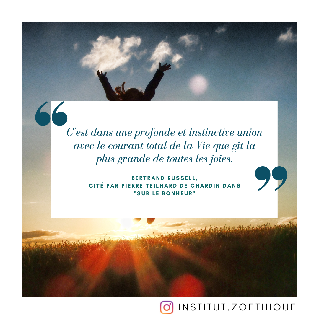 La zoéthique est une étude de la Vie, de ses conditions d’existence, d’épanouissement, et de notre épanouissement en son sein. Autrement dit, la question centrale de la zoéthique est : comment mener une vie bonne en se coulant dans le flux de la Vie ?